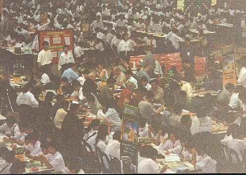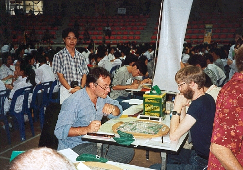 In July 2001, a group of British players travelled to Thailand to take part in a large tournament. These photographs appear with kind permission of Evan Simpson. They are large files but excellent quality.