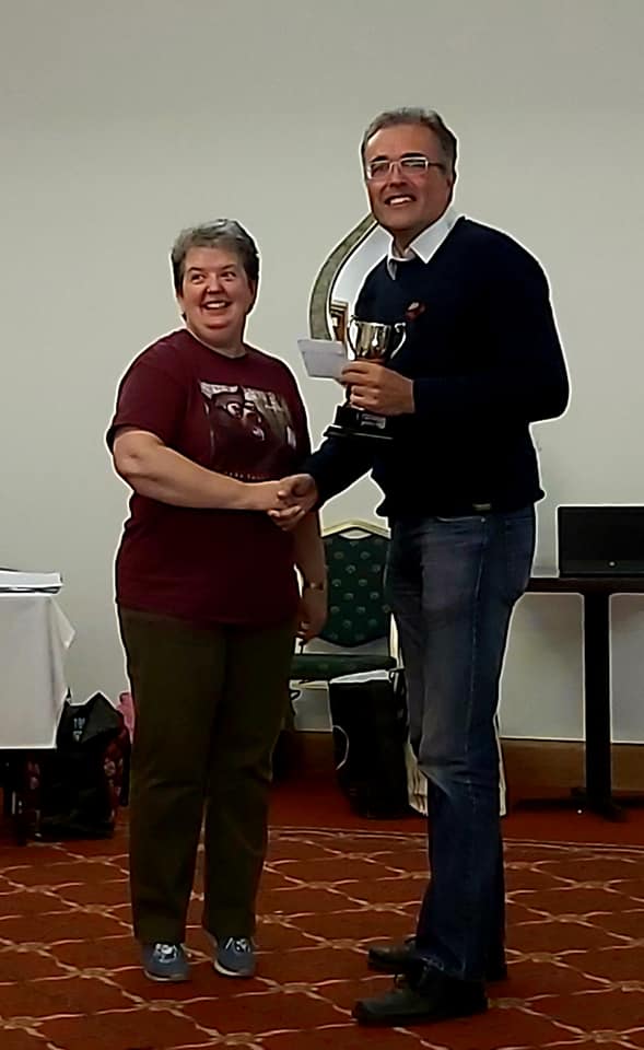 Nuala's busy weekend included the baking of a wide selection of cakes. These met with widespread approval and were all gone in short order. Plenty of raffle prizes were on offer, as the draw took place just before the final game, whilst the pairings were being prepared. Whilst some people unluckily missed out on a prize, some others were wondering how to carry their prizes home!